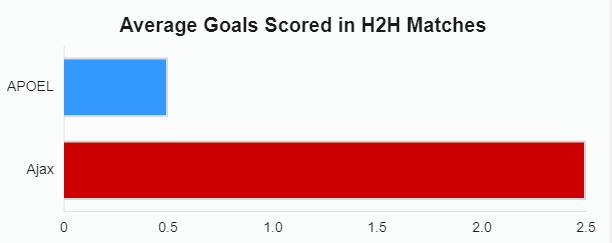 আজ অবধি তাদের ম্যাচগুলিতে এই বিশেষ সংঘর্ষে ৩.০ গড়ে গোল হয়েছে। এপিওএল ০.৫ গড়ে স্কোর করেছে এবং অ্যাজাক্স প্রতিবার তাদের সাথে দেখা করে ২.৫ গড়ে স্কোর করেছে।