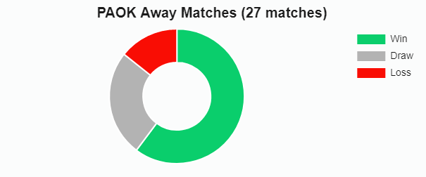 পিএওকে গত বছরে ৫২ টি ম্যাচ খেলেছে; তার মধ্যে ৩৪ টি জয় আছে; ১০ টি ম্যাচ ড্র; এবং ৮টি ম্যাচ লস। এটি তাদের সাম্প্রতিক উইন-ড্র-লসের হার দেয়: ৬৫% -১৯% -১৫%।