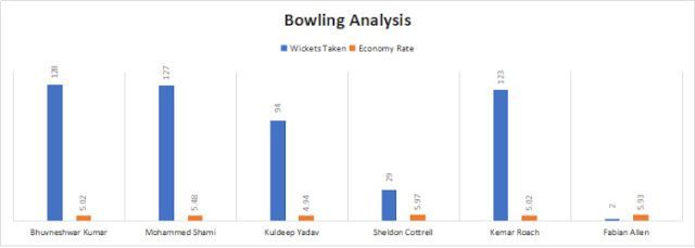 ওয়েস্ট ইন্ডিজের বোলিং ইউনিট খারাপ পারফর্ম করেছে। তাদের বোলারদের বল শেষদিকে রোহিত শর্মা এবং ভারতের অলরাউন্ডাররা সহজভাবে খেলছিল।