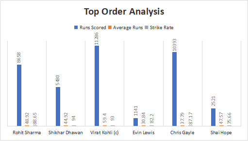 ওয়েস্ট ইন্ডিজের শীর্ষ তিন ব্যাটসম্যানঃ
