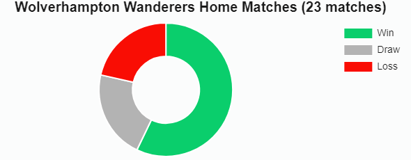 গত বছরের দিকে একটু নজর দেওয়া যাক, তারা মোট ৫০ টি ম্যাচ খেলেছে। এর মধ্যে তাদের ২৪ টি জয় আছে; ১৩ টি ম্যাচ ড্র; এবং ১৩ টি ম্যাচ হেরেছে। এটি ওলভারহ্যাম্পটন ওয়ান্ডার্সকে সাম্প্রতিক উইন-ড্র-লসের হার দেয়: ৪৮% -২৬% -২৬%।