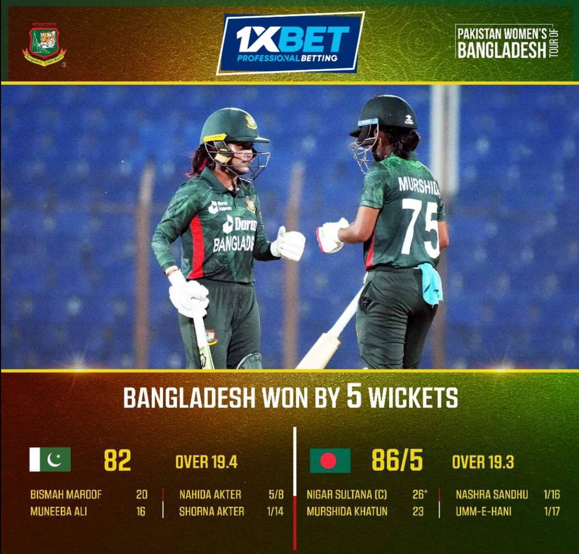 ফিচার Bangladesh won by 5 Wickets 0 0 1 min read 2 years ago Md. Siraj 0 0 Read Time6 Second Pakistan Women’s Tour of Bangladesh 2023 | 1st T20i Match Bangladesh Pakistan Bangladesh won by 5 Wickets #BCB | #Cricket | #BANWvPAKW Share Facebook Twitter Pinterest LinkedIn About Post Author Md. Siraj admin@benglasport.com Happy 0 0 % Sad 0 0 % Excited 0 0 % Sleepy 0 0 % Angry 0 0 % Surprise 0 0 % Md. Siraj See author's posts Post Views: 329 Facebook Comments Continue Reading Previous Maxwell smashed the record by NINE BALLS 🤯 #CWC23Next Bas de Leede was taken apart by a Maxwell masterclass 😳