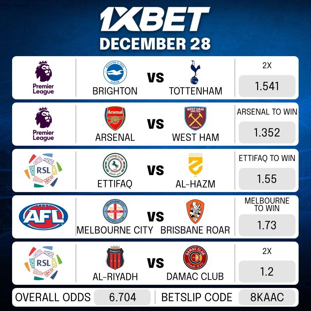 Here goes the betslip for today’s MATCHES.