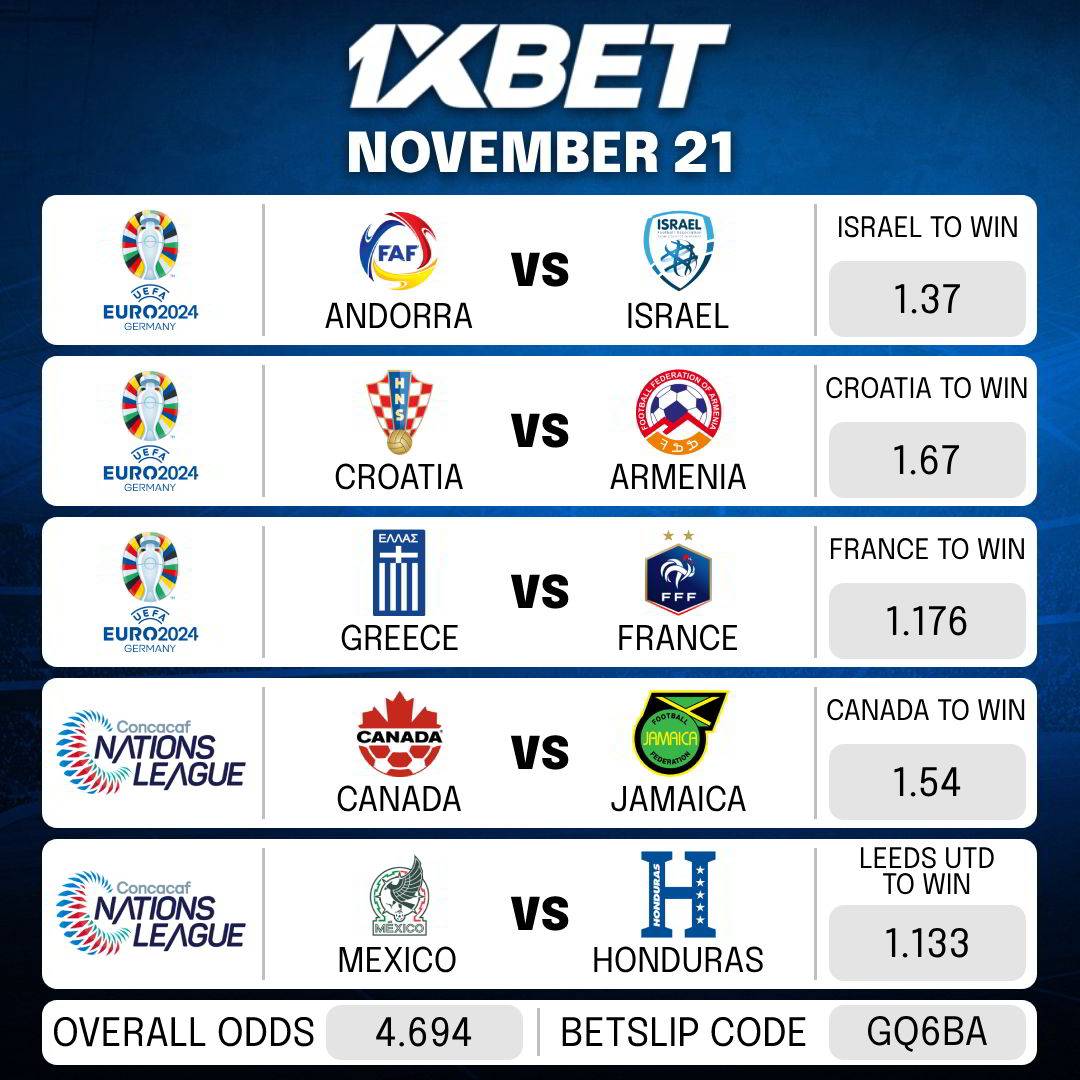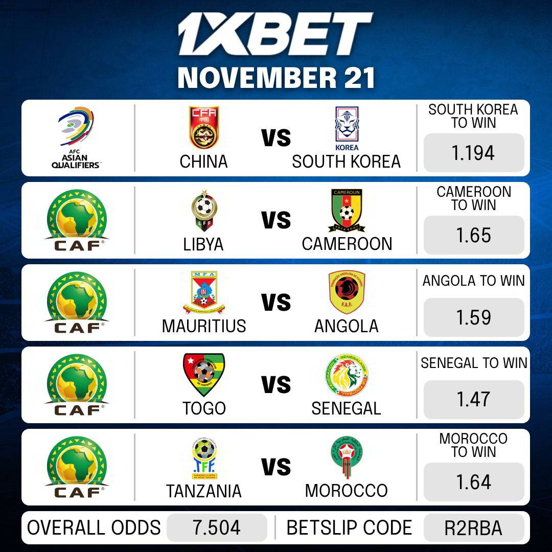 Here goes the betslip for today’s MATCHES.