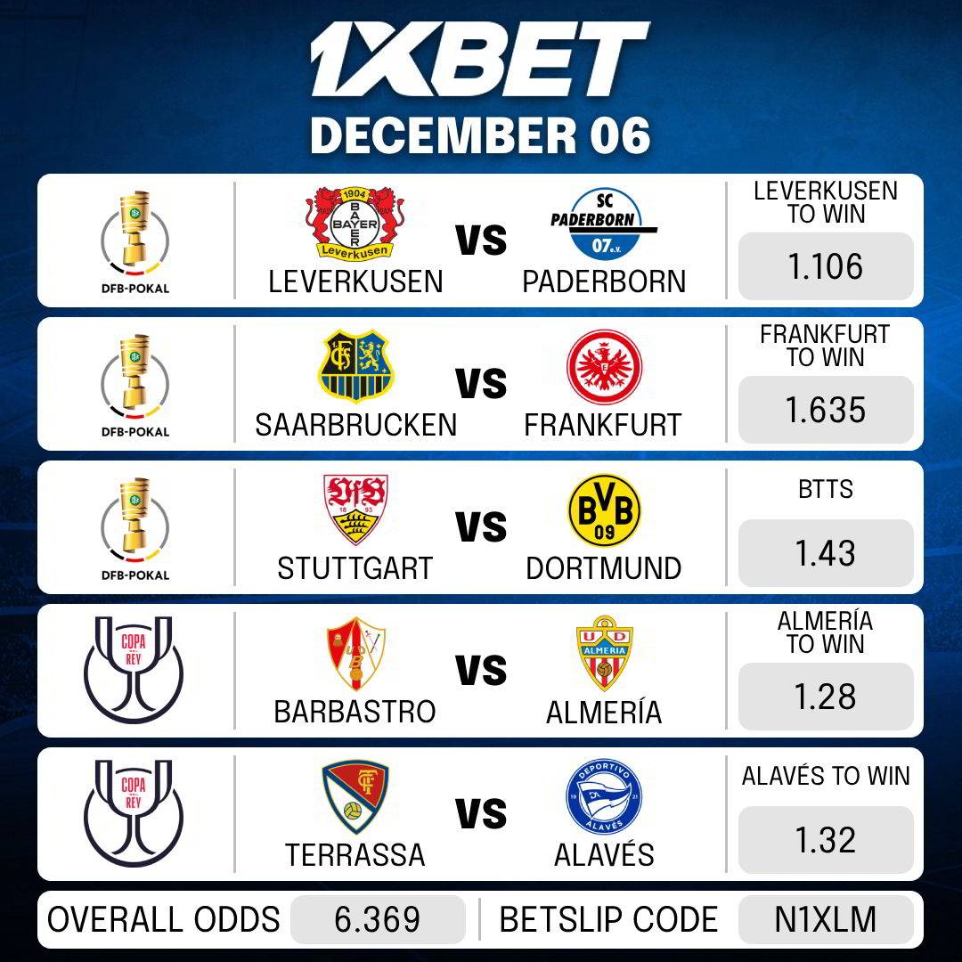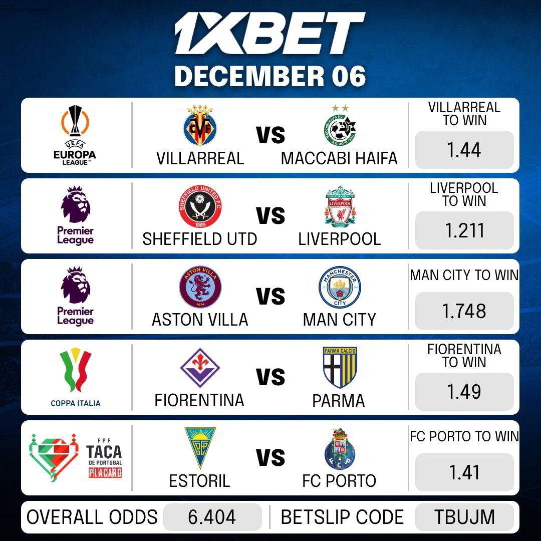 Here goes the betslip for today’s MATCHES.