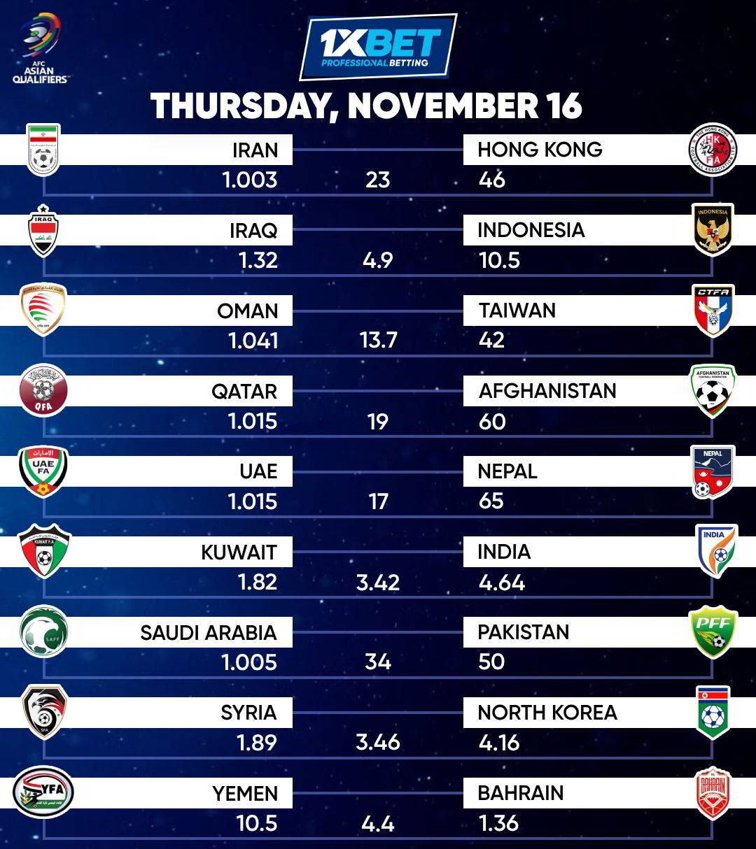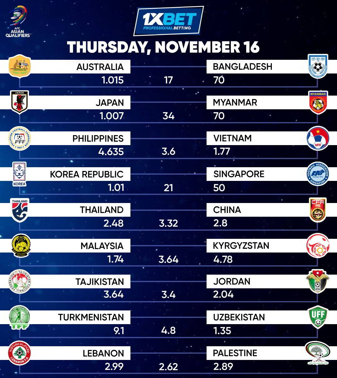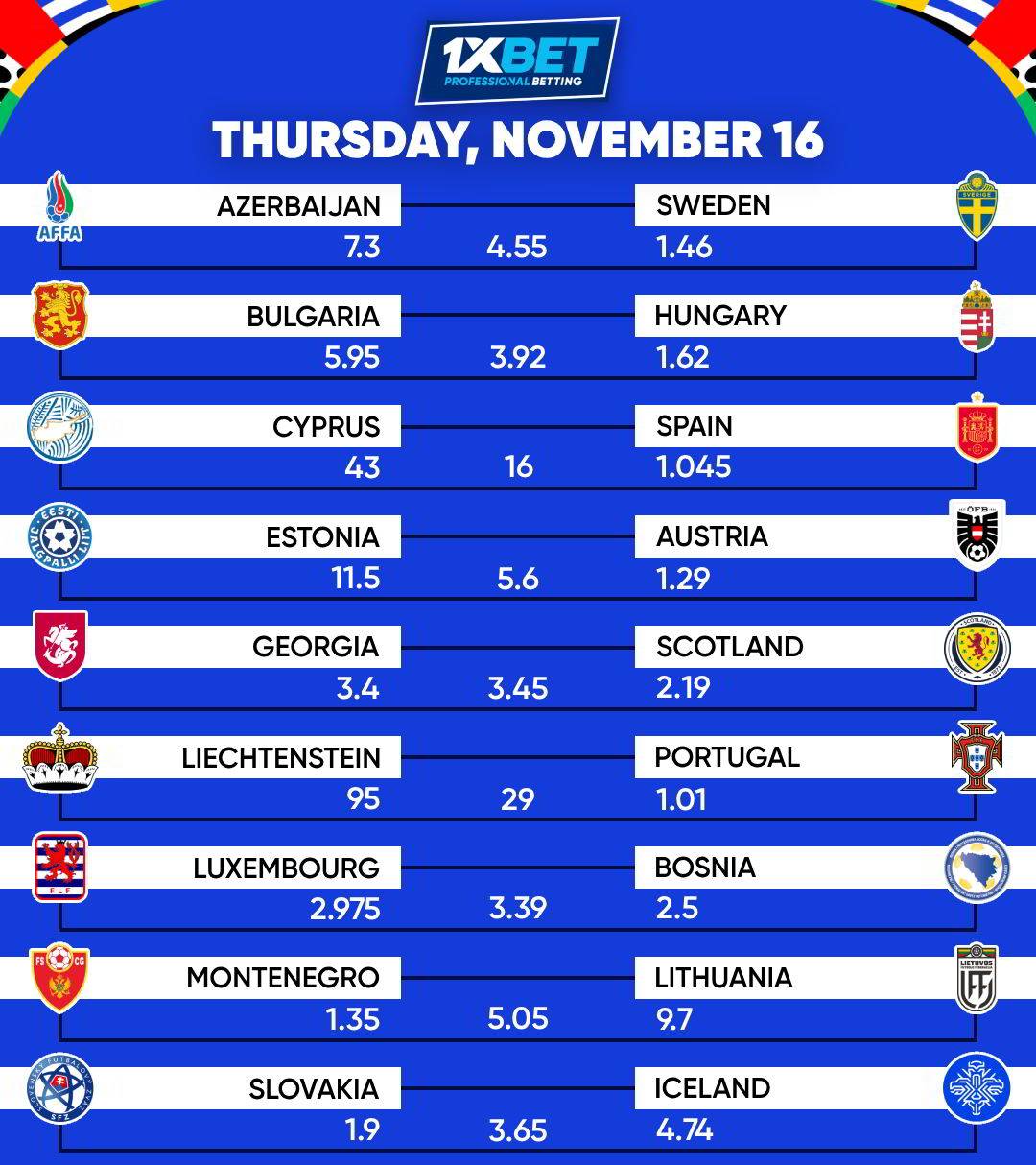 Here goes the odds for today’s MATCHES.