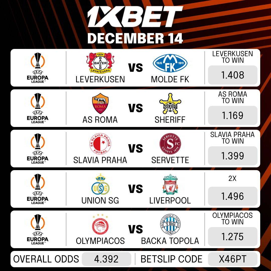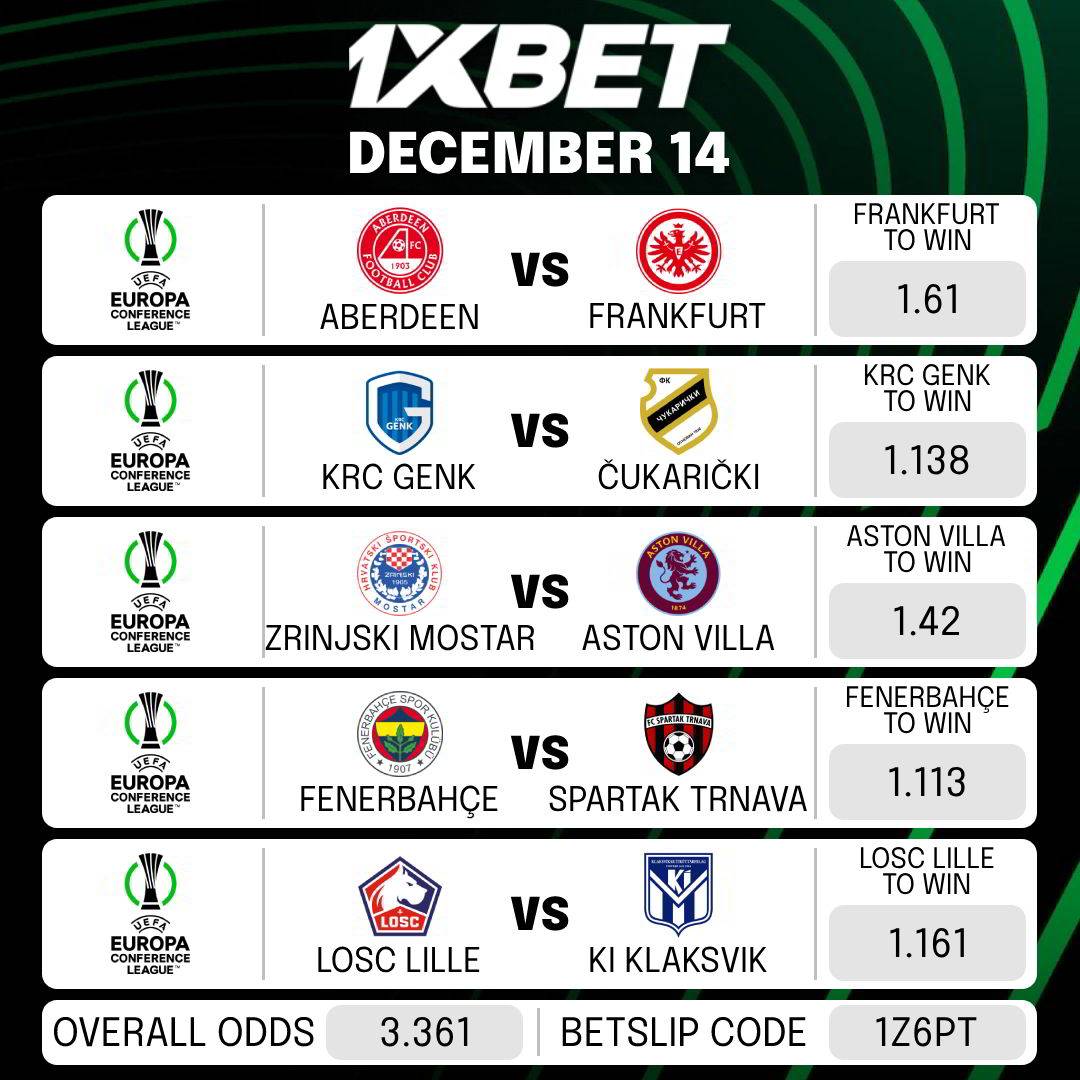 Here goes the betslip for today’s MATCHES.