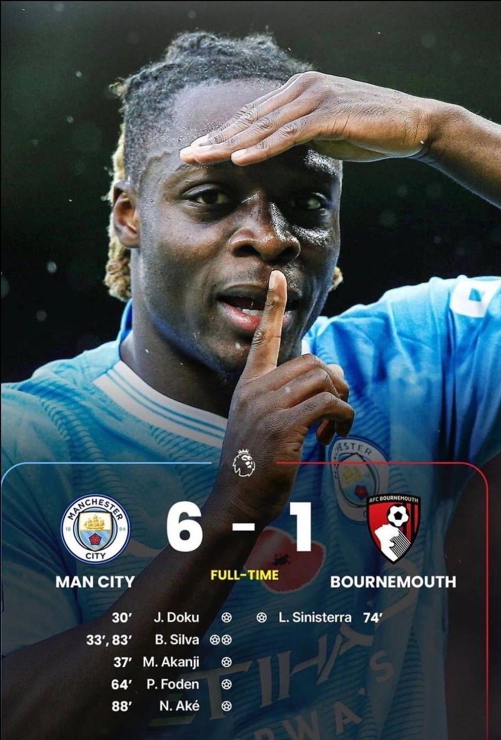 Everyone scored at Manchester City except HaalandđĨđ Jeremy Doku made a goal and 4 assistsđĩ