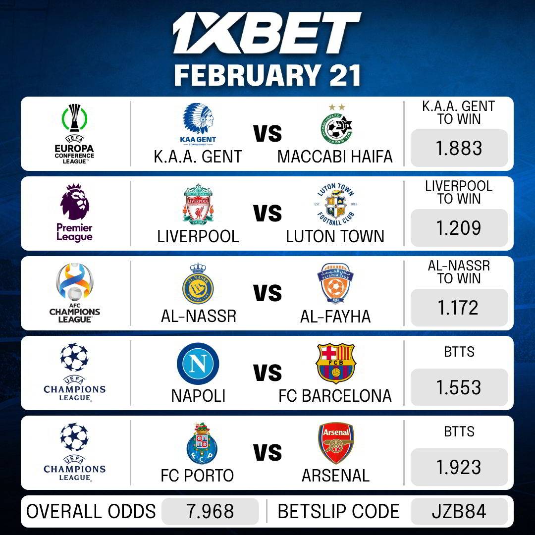 Here goes the betslip for today’s MATCHES.