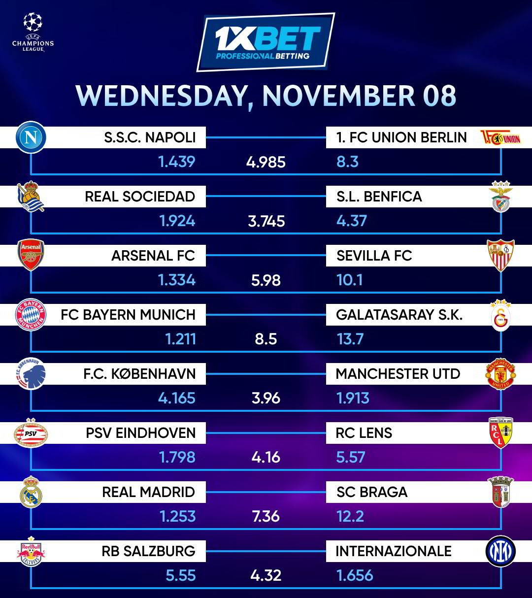 Here goes the odds for today’s MATCHES.