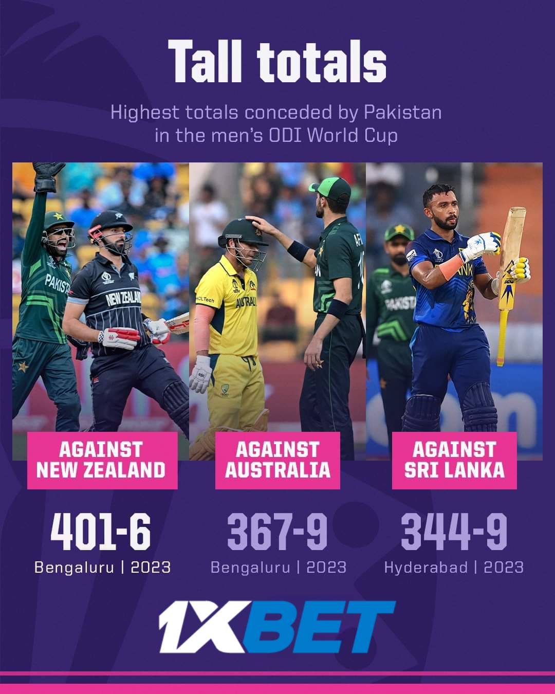 Pakistan’s bowlers have had a tough time in this World Cup Three of their highest totals conceded have taken place in 2023 alone 😮 es.pn/CWC23-M35 #PAKvNZ #CWC23